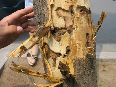 2、人工殺卵:每年7月至8月天牛產卵期,在樹干上查找卵塊,用鐵器擊破卵塊。